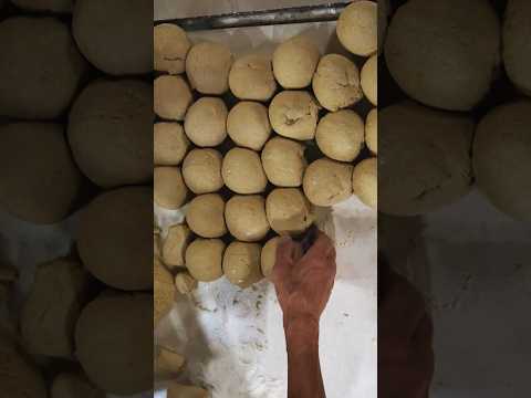 پهن کردن خمیر رمال زدن و کنجد پاشی جهت پخت نان بربری و نان روغنی